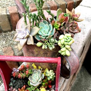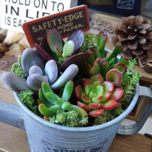 まだ肌寒く風邪後の私には こたえます😷 でも、溜まっていた多肉ちゃん達を 早く植えてあげたくて頑張りました💕 2つ寄せ植え仕上がました。 ブリキの古いジョウロに底穴開けて 寄せ寄せです❣️