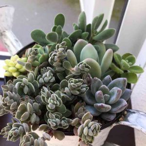 やっと寄せ植え出来た~(´^ω^`) 青緑の葉って綺麗だなぁ😍