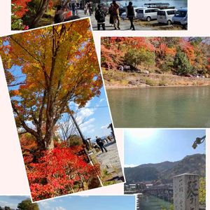11/26(金)🌞 恒例の京都 🍁 嵐山に到着 渡月橋にも 人🚶♀️~人🚶♂️人🚶♂️~の波 すっかり賑わいが戻ったかのように思われます😀💕 🍁🍁🍁真っ赤な秋が 出迎えてくれました🥰