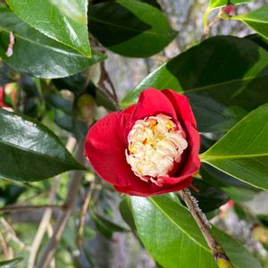 椿 卜伴(ぼくはん) 初めての花が咲きました🤗☝️ ちょっと想像とは違ったなぁ… 中の唐子部分が白⚪️の筈が微妙な感じ…😰 これから変わっていくのか、初めての花だからこんなもんなのか、 なにせ私も初めて見るものでよく分かりません。 経過観察が必要ですな🧐😅