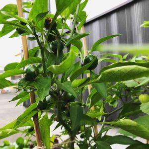 収穫後のミニパプリカが返り咲いて、収穫前よりも実をつけています。 (スーパーのパプリカの種から育てたものです。) 1箇所に一つに摘花してみたけど、この量。 色づきが間に合わなければピーマンのように若採りしてみるか!?