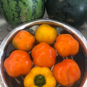 おはようございます😃 初挑戦のパプリカ🫑とスイカ🍉😊 傷も虫食いも有って反省点も多いけど🥺 来年はもっと上手に作れるように頑張ろ😤
