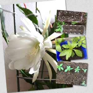 今日は、鳳仙花の種まきをしました。 卵パックに、種まき用の土のと、その辺の土で😅 右中段は、4月16日に種まきした鳳仙花を移植したものですが、何も考えず植えたので窮屈そうで、今日木の下に5つ移動しました。 鳳仙花は根を傷つけてはいけないようですが、プチプチ根のきれる音がしてました😵 木の下だけど、上手く育つかな⁇ 日陰でも育つ植物、ご存知の方、教えて下さい😅 左は、先週一つだけ咲いたクジャクサボテンです。 とっても良い香りがしました💕