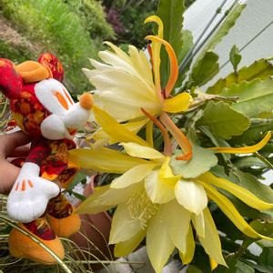クジャクサボテンの黄色が咲きました😊20cmくらいある大きな花でビックリ‼️お見事です✨