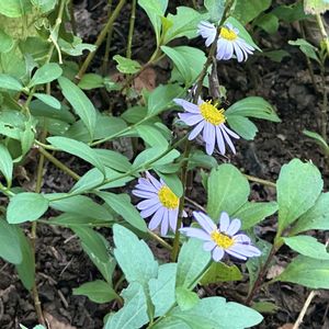 オオユウガギクですね😍 ヨメナの仲間は分類がなかなか難しく、このオオユウガギクも中国からのオオユウガギクと南方からのコヨメナが交雑したものと考えられているらしい。 分布域が愛知以西なので関東には自生せず、日常的に比較して見れないので今ひとつよく分からないのですが、見た感じでは花はユウガギクより大きく、花弁は細い。ユウガギクの葉がより厚く毛が生えているのに対して、オオユウガギクの葉は薄く毛がないと言われてます🤔