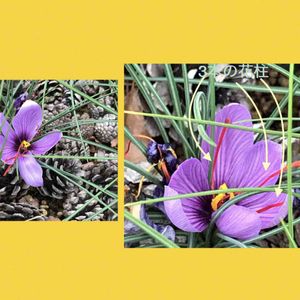 サフランは、秋咲きのアヤメ科のクロッカスの一種で染料、香料、薬用として栽培され、今は観賞用としても利用されています。料理に使われているサフランは、その花の3本の花柱を抜き取って乾燥させたものです。