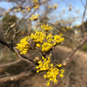 サンシュユ ここまで思いっきり咲いてるの初めて見ました🌼 見れば見るほど繊細な造りが綺麗✨ 東京都薬用植物園にて。