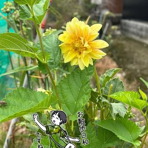暑さに負けず、咲いている我が家のポンポン咲きダリア くたばりつつも咲いていますよ🌼