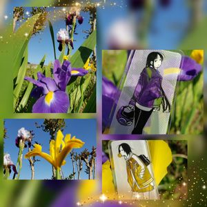 ミニのあやめが咲きました😊 早速 ももこさん、れんかちゃんをお誘いしてパシャリ♥ クールビューティーのお二人です😉