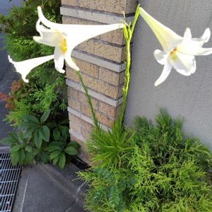 タカサゴユリ 勝手に庭に咲いてます 特定外来種らしいけど、 綺麗だから抜けません… お盆に咲いてくれたらありがたいのに、もう咲いちゃいました