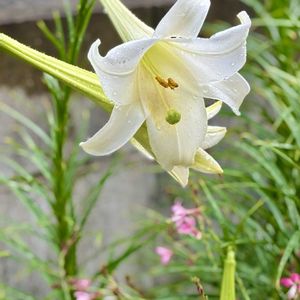 こぼれ種から溝に生えてます🥀タカサゴユリです