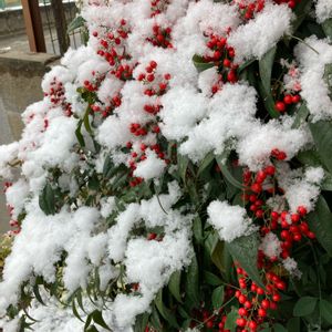 今日のお花 南天。 晴れた日の朝。 今は雪でちょっと重たくなっています 😅😅