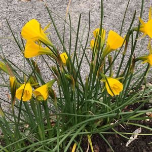 ナルキッスス バルボコディウム ペチコートスイセンというらしい。 道端に突然あってびっくりです。どうやってここに生えたのか❓