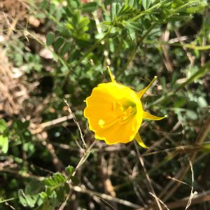 お散歩中の民家の庭からはみ出ていました。 ニラのようなノビルのような葉の中から顔を出したかわいい黄色い花達🌼