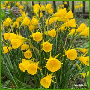 📯ラッパの方が大きい😄 まっ黄色のキンギョたちがパクパクおくちあけて、こっちに向かってくるゥ〰️ 原種系ミニスイセンだそうです。