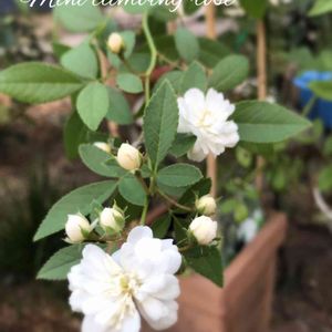お盆休み中です。 まだまだ、暑さも厳しいけど草花に癒されながら夏を乗り切ろう💪 HCで買い得品だった、ミニ クライミング ローズが咲いてます🌹 白の小さな花が涼しげありがたいです😍