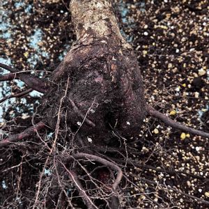 キウイ棚下の根付いた盆栽を掘り上げ。 一枚目はポット苗のまま、数十年放置されたトゲトゲの木(品種不明) 2枚目はモミジ盆栽3本立て、これも根を殆ど落とさないと鉢物に戻せませんでした😭 私の管理限界に達してます。