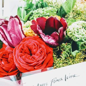 花束をもらいました😃 チューリップ(ブラックパーロット)の色調がシックでおしゃれ😍 巻き巻きのバラ(レッドアップルローズ)も可愛いです😊 ❀お花屋さん情報❀ ANGEL FLOWER WORK(熊本県熊本市) http://www.angel-fwork.jp/