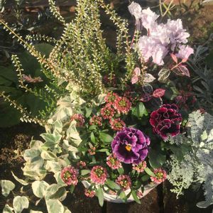 今年最後の寄せ植えはアンティークでシックな雰囲気を目指してみました😊