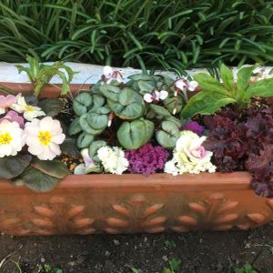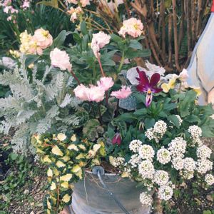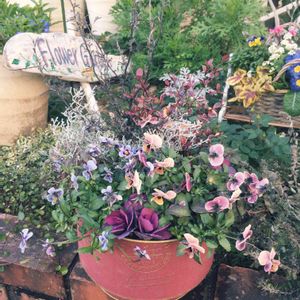 今朝作った寄せ植えです😊 淡い色合いのパンジービオラを中心に仕立てました♪
