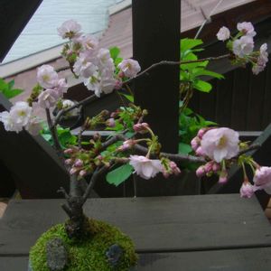 今日雪の中にあった盆栽を出してみました。 石付きのツツジだかサツキだかですが、雪の下で葉が生えてたのでしょうか?