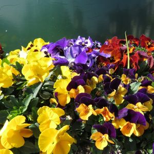 こんばんは~ お日様浴びて 元気いっぱい パンジーの花 日出町の小さな花畑