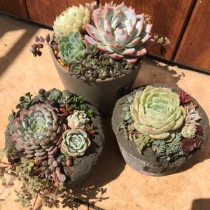 今日の寄植トリオ達。 隙間埋めるものが、見つからず、、ケープブランコに頼りまくる、私。