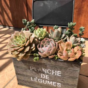母がDIY教室で作ったものに寄せてみました! 傾斜をつけながらしましたが、、、大きな寄せ植えは難しい😫 午前パートから帰って着て、かなりの数を寄せ直しをし、、、今日は実家でご飯を食べよう😚