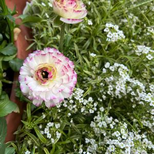 もりもり成長していくスーパーアリッサムに埋もれそうになりながらも咲いてくれたラナンキュラス。 小さな球根だったからあまり期待できないなーと軽い気持ちでまだ小さなアリッサムの間に植えてました。 もりもり育つスーパーアリッサムに負けることなく去年の花より小さいものの可愛く咲いてくれました。 また球根を掘って来年はもっと大きく咲かせてあげたいな☺️