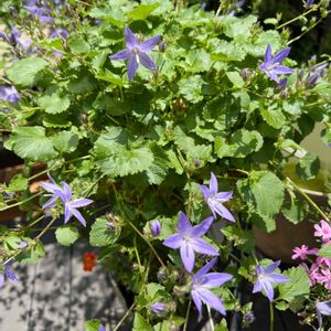 母が育てていた物を譲り受けたのですが名前がわかりません。 ベルフラワー?と聞いてみたのですが違うけど名前を思い出せないそうです。 放射線状に伸びて花を咲かせます。 どなたかわかる方がいらっしゃいましたらよろしくお願いします。