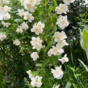 田舎の家のバイカウツギ。 GWにはつぼみだった花達が1週間で満開になってました。