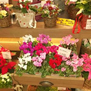 夕飯買い出しのついでに たまに寄る生花店へ🌸 華やかなお正月飾りを眺めつつも 必ず覗く見切り品コーナーに直行💨💦 結構大きなサイズのシクラメンが なんと200円‼🎶 税込じゃなかったけど仕方ないやね😉