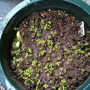 《お楽しみ袋》 何の種か色々 ってのを 蒔いた 左に 何か出てきた♪ 蒔く前に📱撮っとけば ここで 教えて貰えたかもやった 残念💦