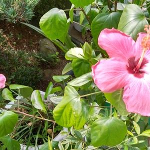 今日のハイビスカスたちの開花の様子は、「オレンジフラミンゴ」、「ポモナ」、古株の「ハイビスカス」(2輪)でした🥰
