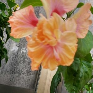 オレンジフラミンゴ🧡🦩🧡🍃ハイビスカス 夏場は外生活 花が大きくなりますね 2025.9-38