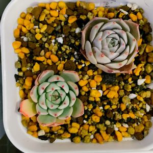 上、三角お屋根🌱 ☔️に濡れて水飛ばし後💦 外葉の爪は赤黒っぽいのに 真ん中かわいい~😍 笑える可愛さ🤣 下、北側🌱 水飛ばし後💦 いつもと違って見える🙄 全然ふえな~い😑