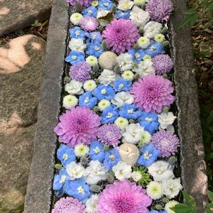 花手水パシャリ隊からお届け🎁 行田八幡神社7月の花手水💙