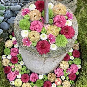 おはようございます😊 行田八幡神社10月の花手水🤍 今日も元気に参りましょう🤗
