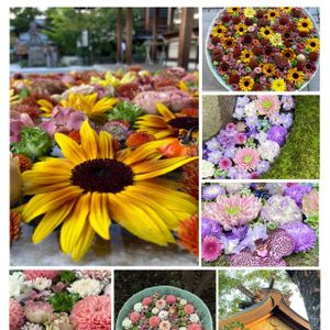 おはようございます🌻 一昨日 鴻巣市にある花のオアシスにて ヒマワリの摘み取りをして参りました。 無料摘み取り👏👏👏 ありがたい有難い 早速おウチ花手水 欲張り過ぎて器から 溢れそうになってる🤣 でもいいよね😉 ビタミンカラーでパワー注入💪 今週も元気に参りましょう🤗