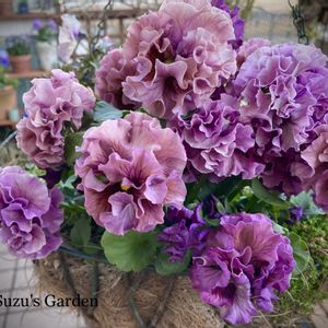2pic目です😊 【パンジー】 サトウ園芸 『ローブ ドゥ アントワネット』 サトウ園芸のハウスの親株さんを褒めてばかりいたら 私も見て〜❗️と言わんばかりに 爆咲きしてきました🥰💕 嬉しいなぁ〜❣️ 〜草花の様子〜 種まきっ子で 初めてふりふりぶりぶりの子が咲いた‼️ (このpic の子では無いです。まだまだおちびです!) どう見ても『アントワネット』😍 やった〜💕 寄せ植えにしていたクローバー🍀がもりもりになってしまっていたので、半分ぐらい移植させました😊 頑張って大きくなるんだよ〜😊💕 『ドラキュラ』の札を挿しておいた子は どう見ても『シエルブリエ』 入れ替わっタネ〜😅 ここに来てふりふり系の子(ほぼシエルブリエ)も開花してきました🥰 (種で育てた子達は自分だけで楽しみます😊)