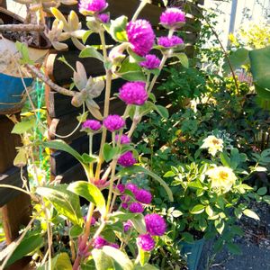 おはようございます☀️ 昨日は朝晩、涼しく過ごせました😊 今日のお花、『センニチコウ』です。 ①ホムセンの見切り品。 バーコードも薄れて99円入力するのに店員さんも一苦労。ポットの土もカチンカチンで可哀想な状態でした。 ②昨年のセンニチコウ