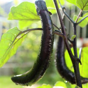 キョロキョロお花散歩。 珍しい長茄子。 パチリ