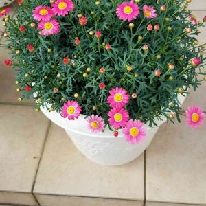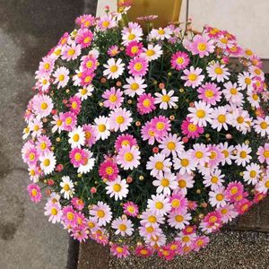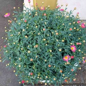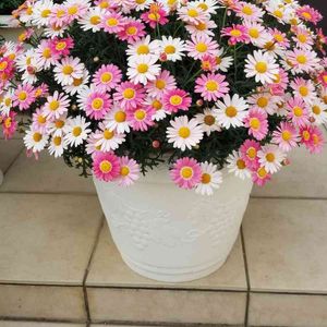 PWマーガレット・ストロベリーホイップ 1月13日(木)にお迎えしました 前回のようなが4月18日(月) 開花宣言したとたんに一昨日の名古屋は気温25度に誘われてたくさん咲いてくれました~‼️ 明後日から残念ながら梅雨のような天気の名古屋 可愛いから少しずつでも咲いて欲しいですね~‼️