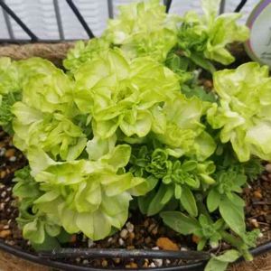 八重咲きぺチュニア『湘南ヴェルデ』さん 5月4日(水)にお迎えしました 花びらにみどりの縁が入る特徴があるヴェルデさん~‼️ この涼しげなグリーンライムカラーがお気に入りですー‼️