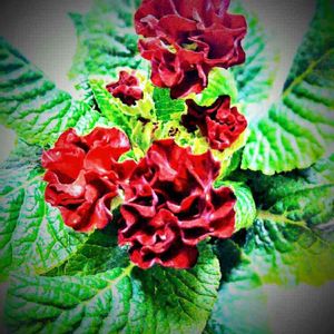 こんばんは。冷えて来ました💦明日は最高気温が1℃までしか上がりません😣 午後からは雪❄の予報。 今日産直から迎えたプリムラジュリアン少し加工してみました。写真は朱色に見えますか、実際の色はワインレッド。何度も取り直しましたが、中々実際の色お届け出来ません😂