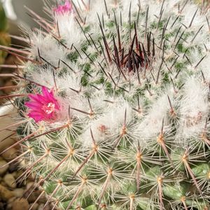 霧墨と思われるサボテン。 マミラリアのお花って本当に可愛い😆💕 刺座の『ほしょほしょ』が マフラーみたいで温かそう🥰✨ picは1/9📸 🏷19日はピンクの日! 参加します🤗🎶