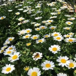 ⚪️🟡⚪️ノースポール⚪️🟡⚪️ ドローンで撮ったように見える 一面のノースポールが満開になりました。 🐝🐝ハチも、蜜を求めて 忙しそう💕 ☀️今日のお庭は、🆙 温度が24°c〜28°c上昇中⤴️⤴️⤴️