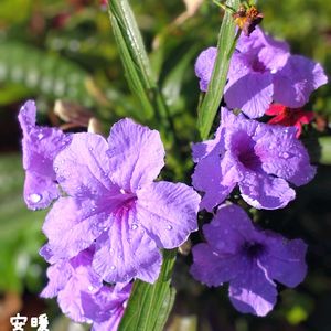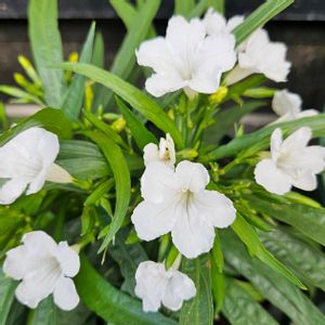ルエリア ムラサキ ピンク ホワイト 3色咲いています 種が落ちたのかあちこちに殖えてしまいます でも咲いてくれると可愛いです 白いお花は葉っぱが細くないですが お花は同じです
