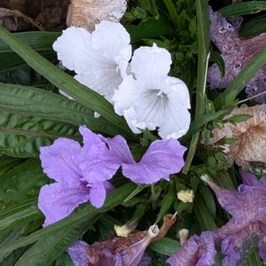1日花のルエリア。日によって花の数は違いますが、割と毎日咲いてくれています。 矮性品種は何年経ってもたくさん咲きませんが背の高い子はよく咲いてくれます。 矮性品種の子は花終わりになんか枯れそうだなと思っても、ちゃんと翌年出てきてくれますが、なかなか大株にはならなくて💦 白花で可愛らしいのに残念😢