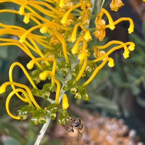 グレビレア ゴールデンレイヤー 寒さに超弱いので、昨年の冬越しは過保護に出窓に入れてたけど、、、大きくなったので玄関ポーチ組に、、、寒さにめげずに蕾まで咲かせてる〜💛✨